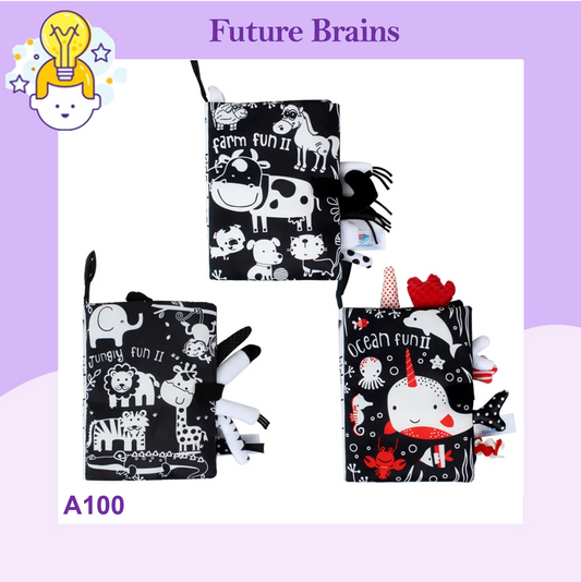 A100 - Black and white baby soft books with tails (farm not available)