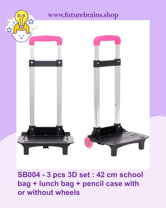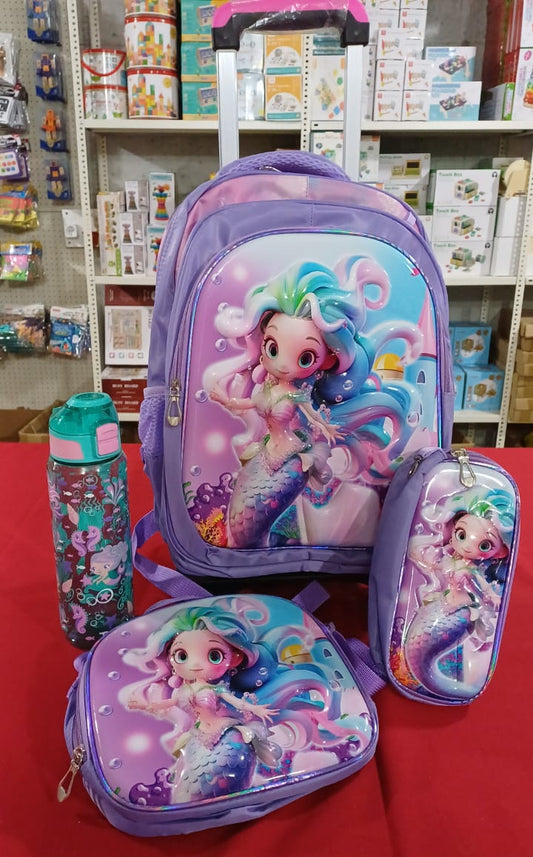 SB006 - 3 pcs 3D set with or without wheels mermaid design: 42 cm school bag + lunch bag + pencil case