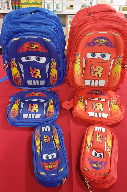 SB005 - 3 pcs 3D set McQueen design: 42 cm school bag + lunch bag + pencil case