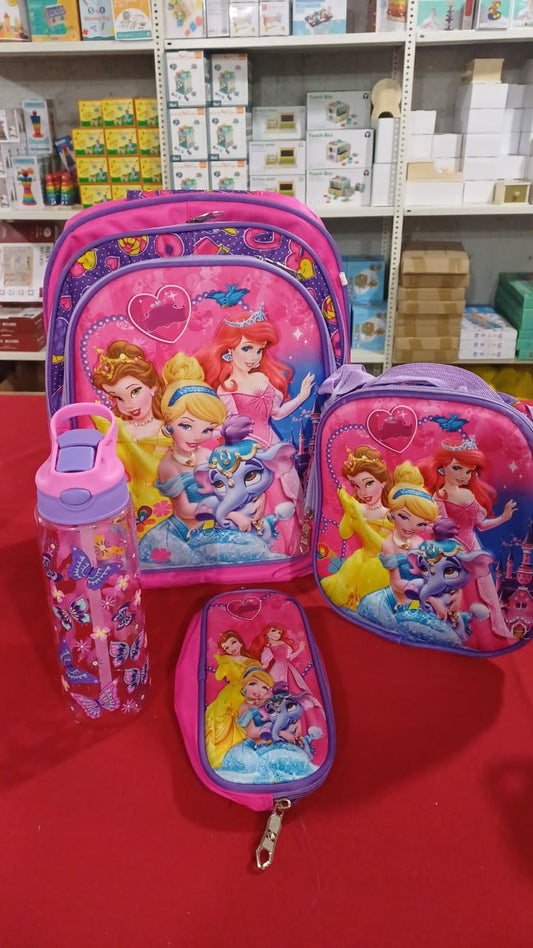 SB004 - 3 pcs 3D set princesses design: 42 cm school bag with or without wheels + lunch bag + pencil case