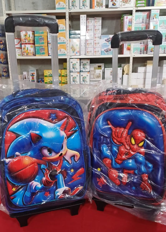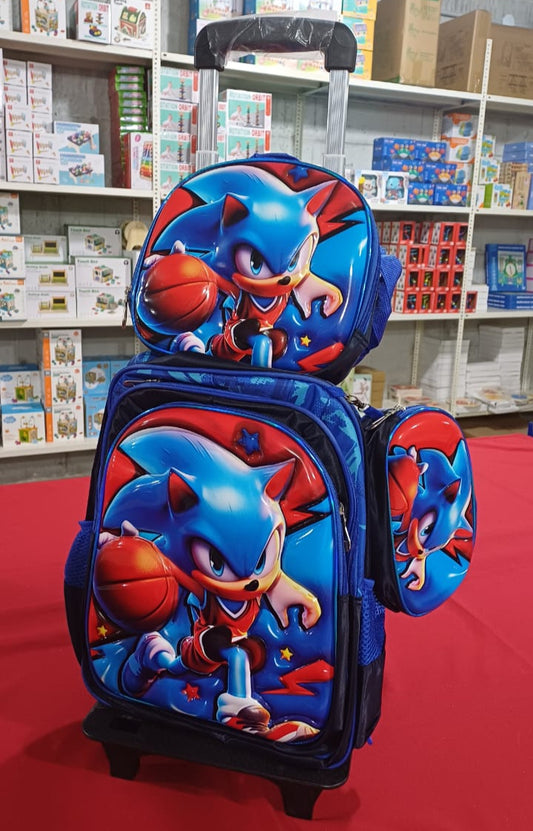 SB006 - 3 pcs 3D set with or without wheels sonic design: 42 cm school bag + lunch bag + pencil case