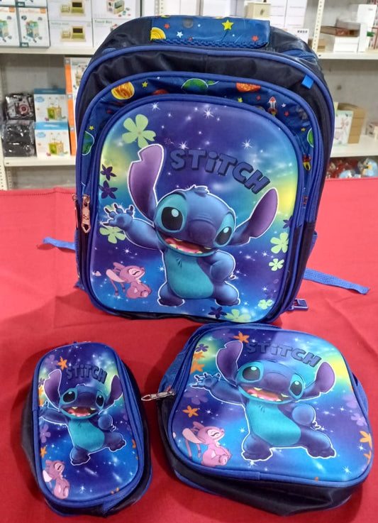 SB004 - 3 pcs 3D set Stitch design: 42 cm school bag with or without wheels + lunch bag + pencil case