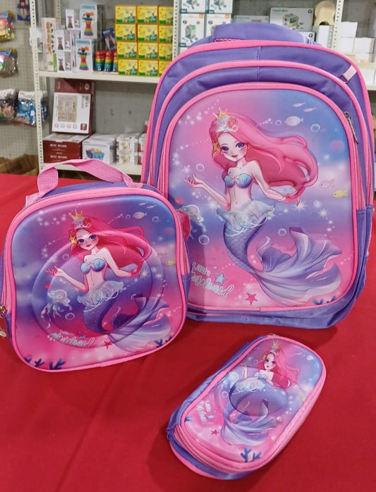 SB005 - 3 pcs 3D set mermaid design: 42 cm school bag + lunch bag + pencil case