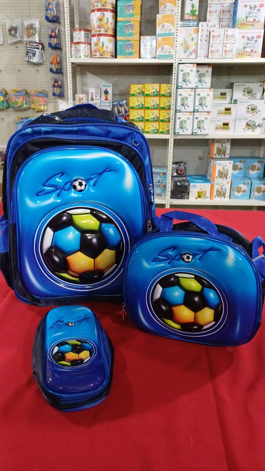 SB006 - 3 pcs 3D set with or without wheels football design: 42 cm school bag + lunch bag + pencil case