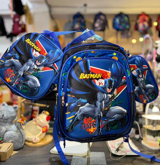SB004 - 3 pcs 3D set batman design: 42 cm school bag with or without wheels + lunch bag + pencil case