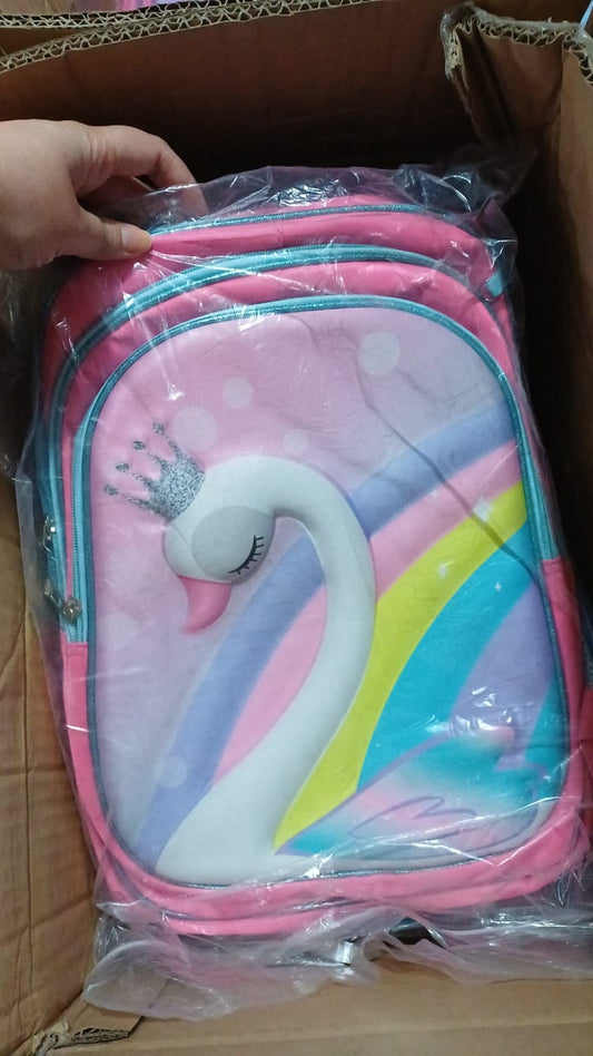 SB005 - 3 pcs 3D set swan design: 42 cm school bag + lunch bag + pencil case