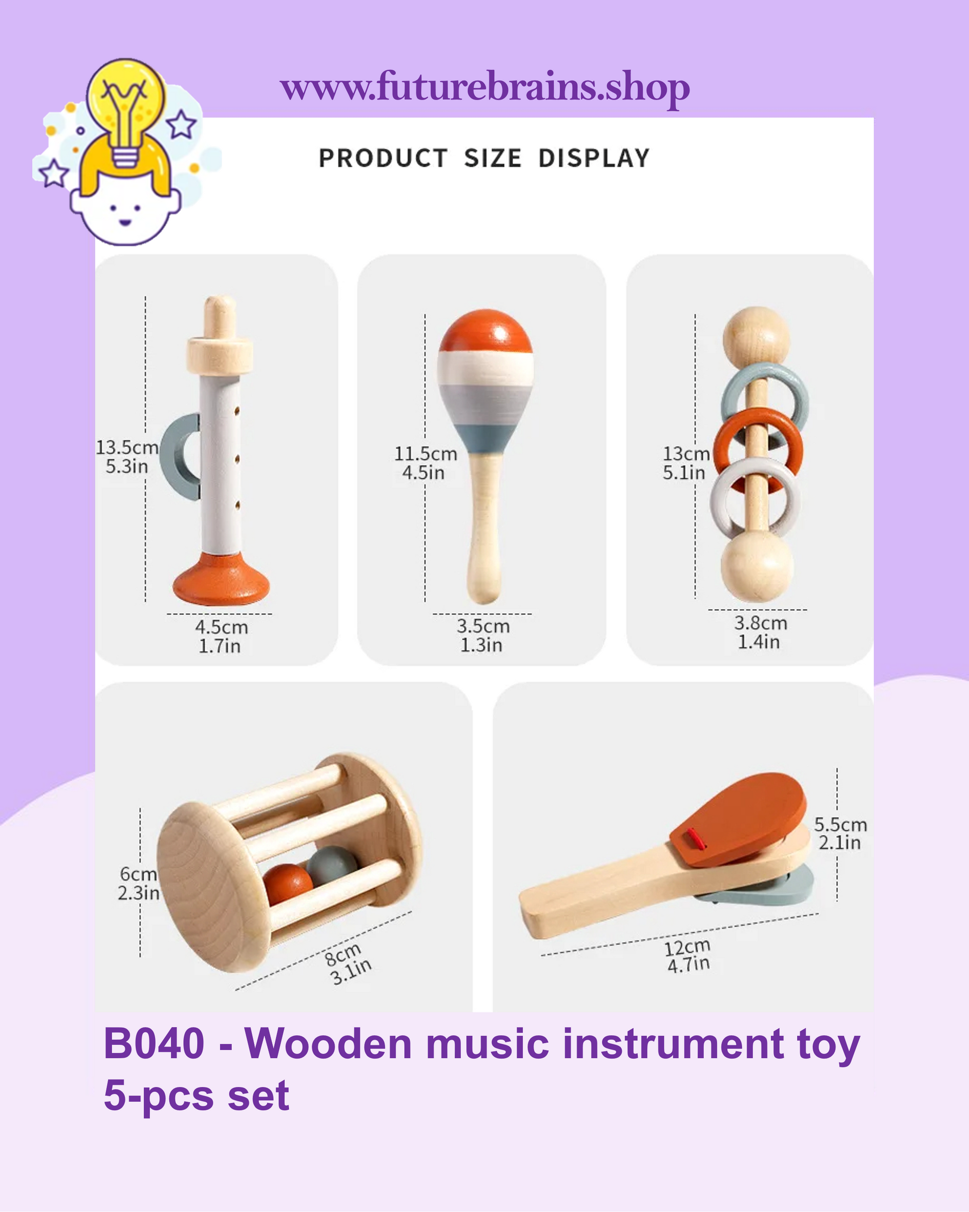B040 - Wooden music instrument toy 5-pcs set