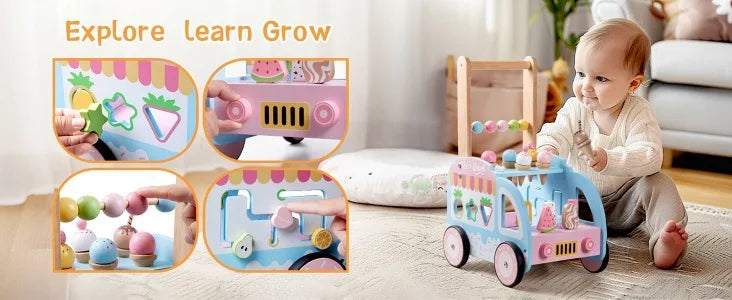 - Adorable Ice Cream Cart Design: Combines a baby walker and pretend play ice cream cart in one, sparking creativity and imagination.
