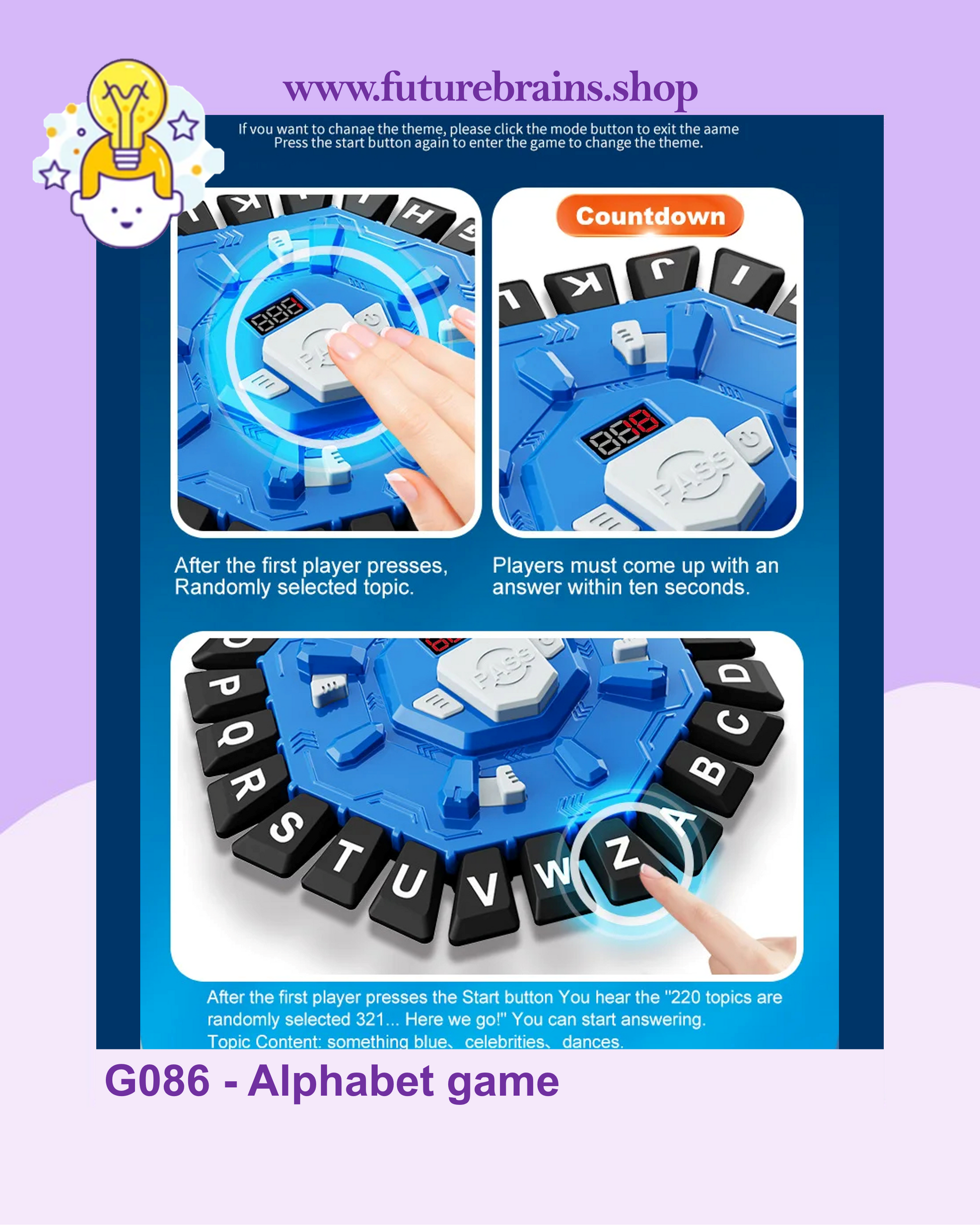 Bring laughter, learning, and quick thinking to your family game nights with the Alphabet Game! This fast-paced challenge forces you to race against the clock to find the right word before the buzzer sounds. It’s the perfect blend of educational development and high-energy competition.