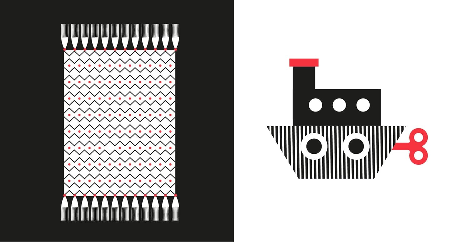 - High-Contrast Black & White Images: Captures infants’ attention and aids in visual development.