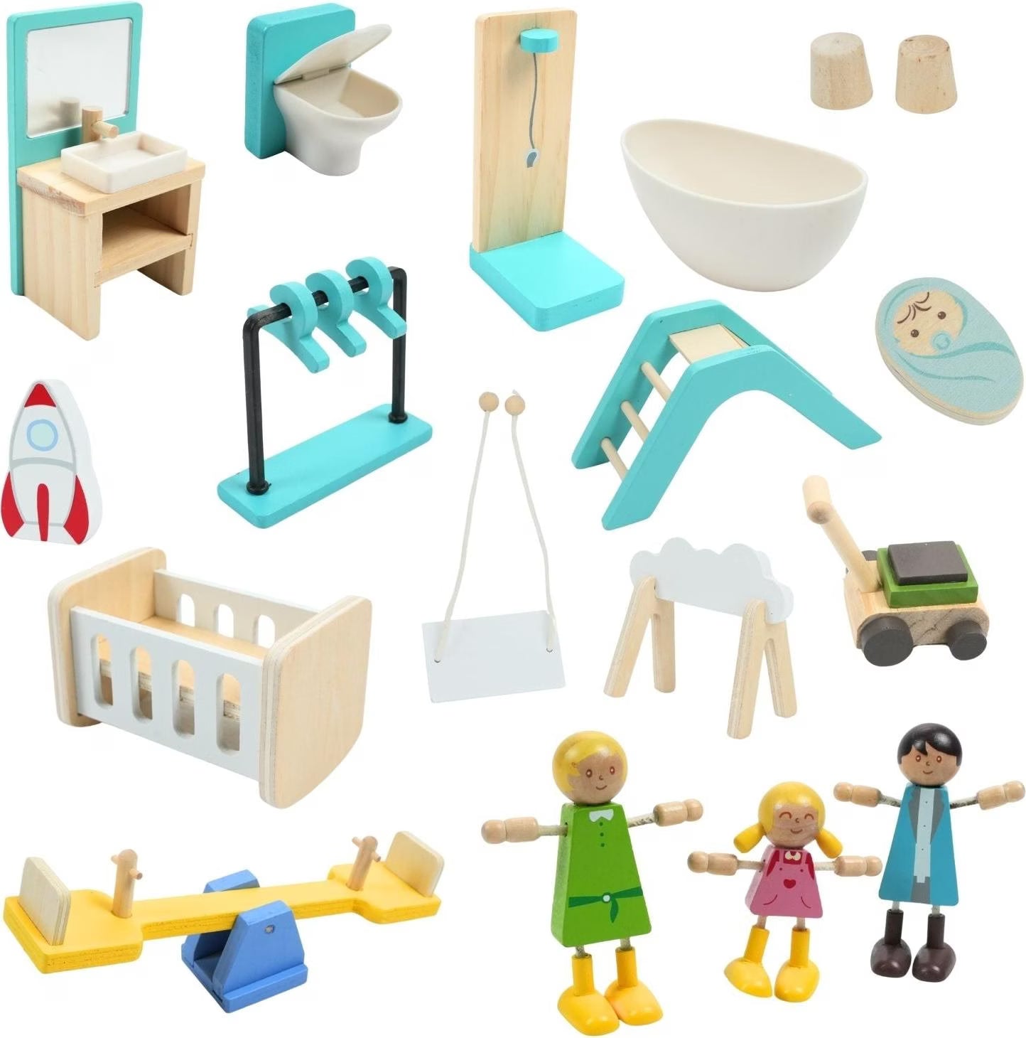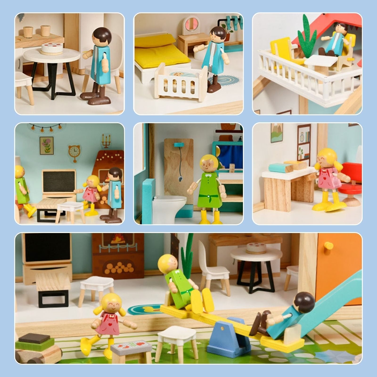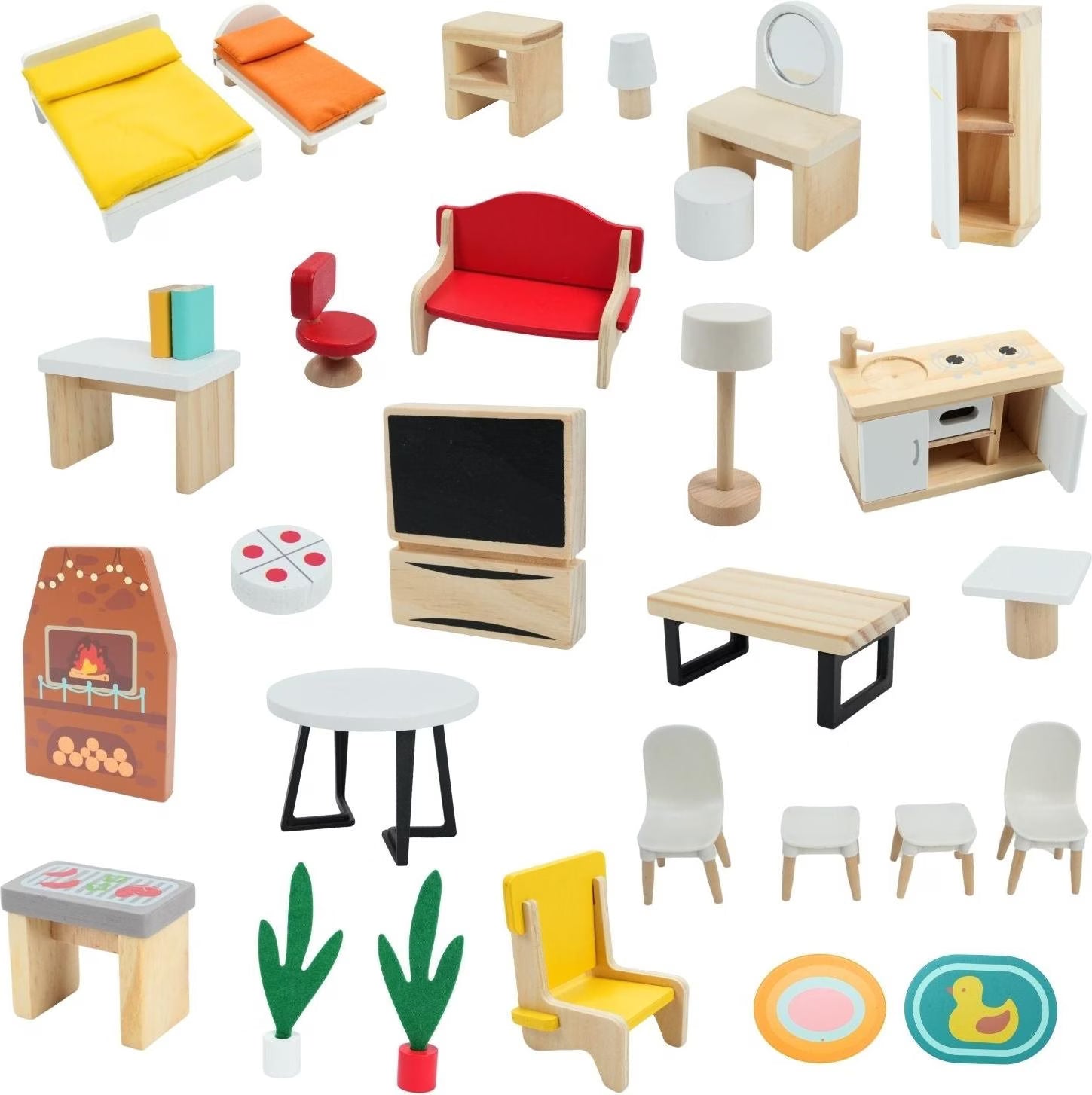- Complete 54-Piece Furniture Set: Comes with wooden and plastic furniture pieces to furnish each room freely.
