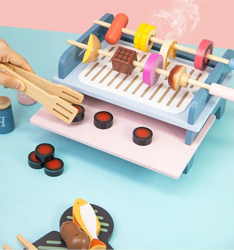 Let your child enjoy hours of imaginative cooking fun with this wooden BBQ playset! Designed to look just like a real grill, it encourages creativity, role-play, and skill development through interactive pretend play.