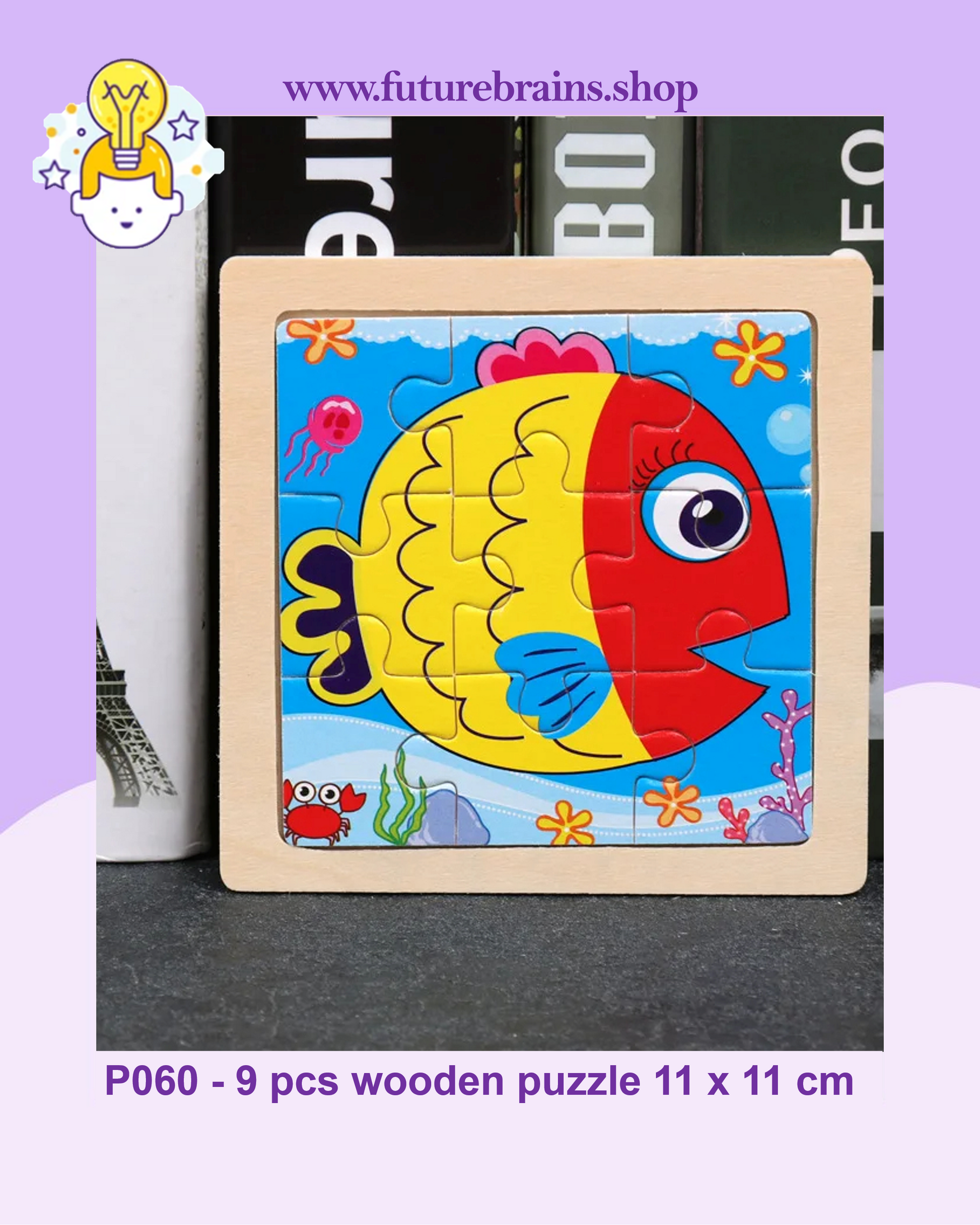 P060 - 9 pcs wooden puzzle 11 x 11 cm (buy 6 puzzles for 3 $)